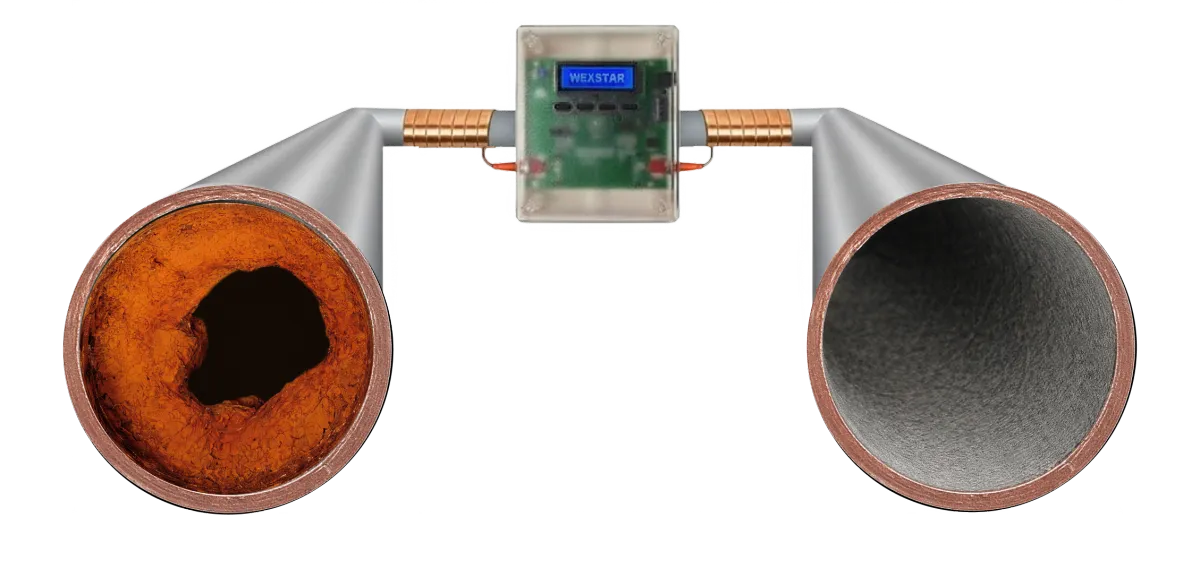 The Wexstar electronic descaler is an eco-friendly water treatment system that protects the whole piping system and appliances against existing scale deposits and rust. The Wexstar descaler Impulse-Technology is based on the principle of physical water treatment. Special electronic impulses change the crystallization process of the liquid calcium; this way the hard scale loses its adhesive power. The technology works exclusively with capacitive electric impulses and doesn't use magnetic fields. The Wexstar electronic descaler operates without the use of any salt or chemicals and requires no maintenance.