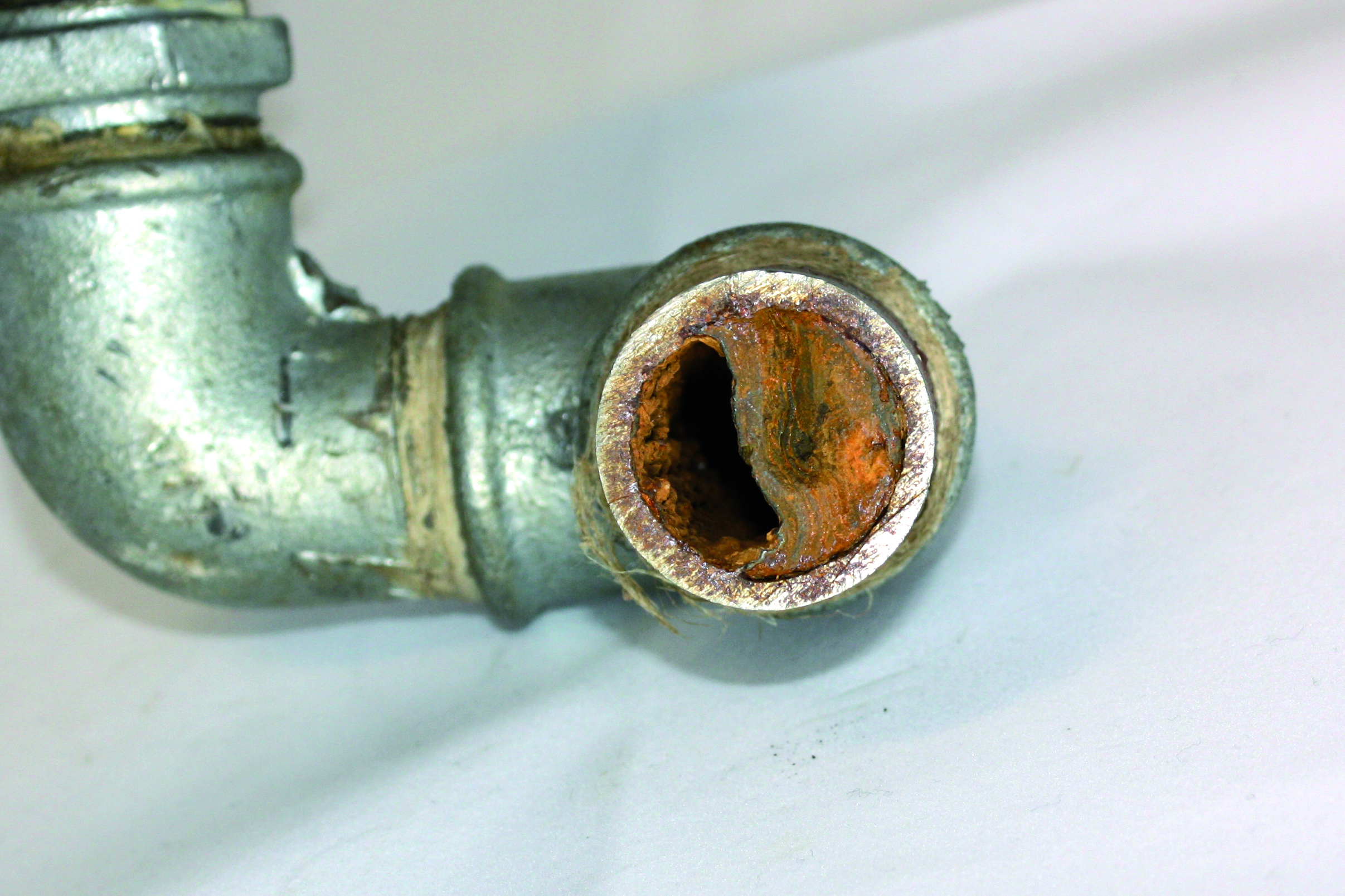 You might expect calcium deposits to look white. But most scale is reddish-brown. That's because iron particles and rust get trapped inside the mineral layers as they form. This rust then bonds to your pipes and causes pitting corrosion, which can lead to leaks, pipe failure, and expensive repairs.